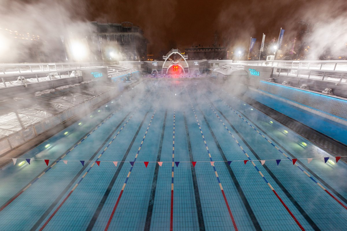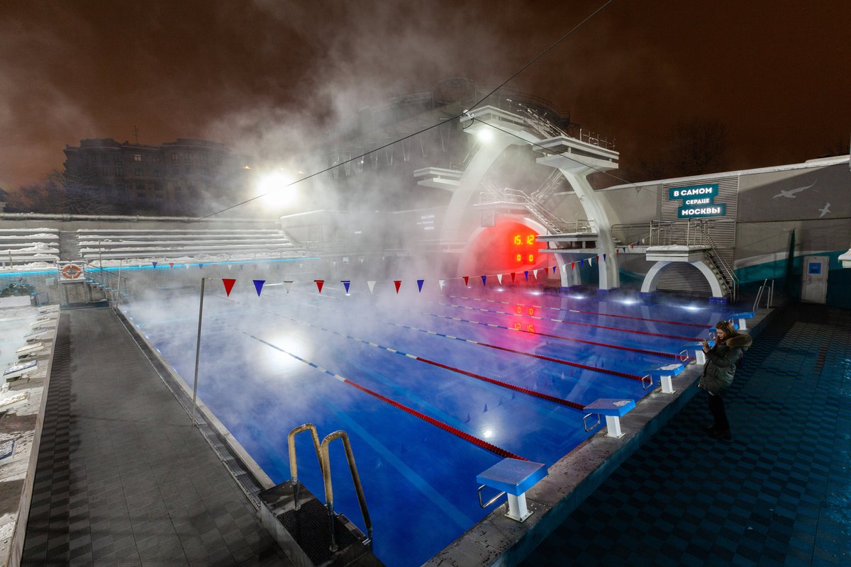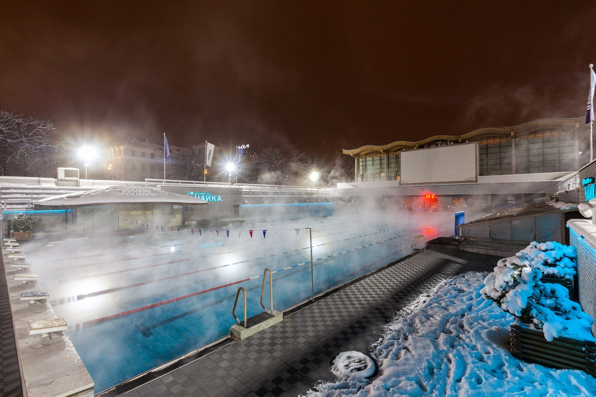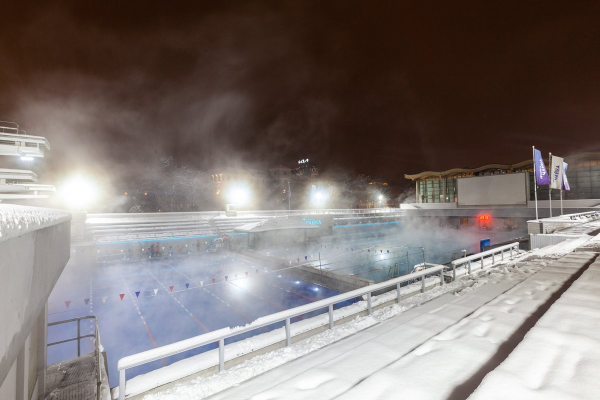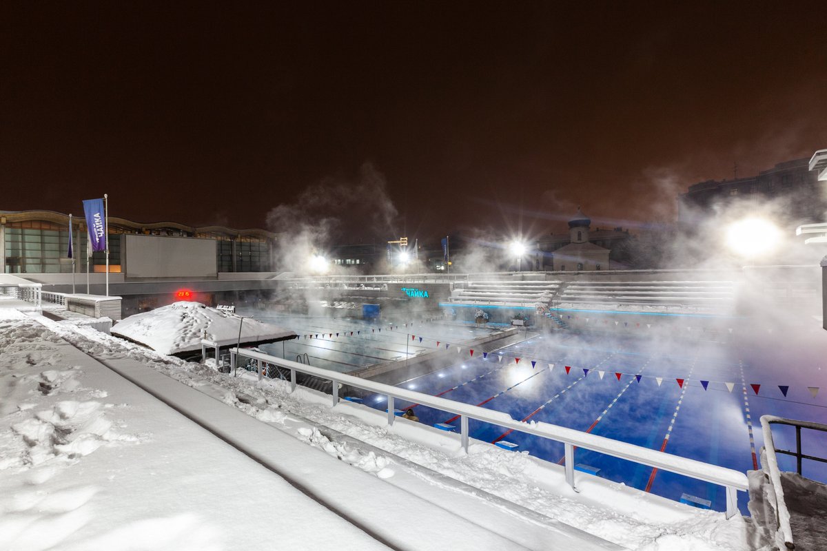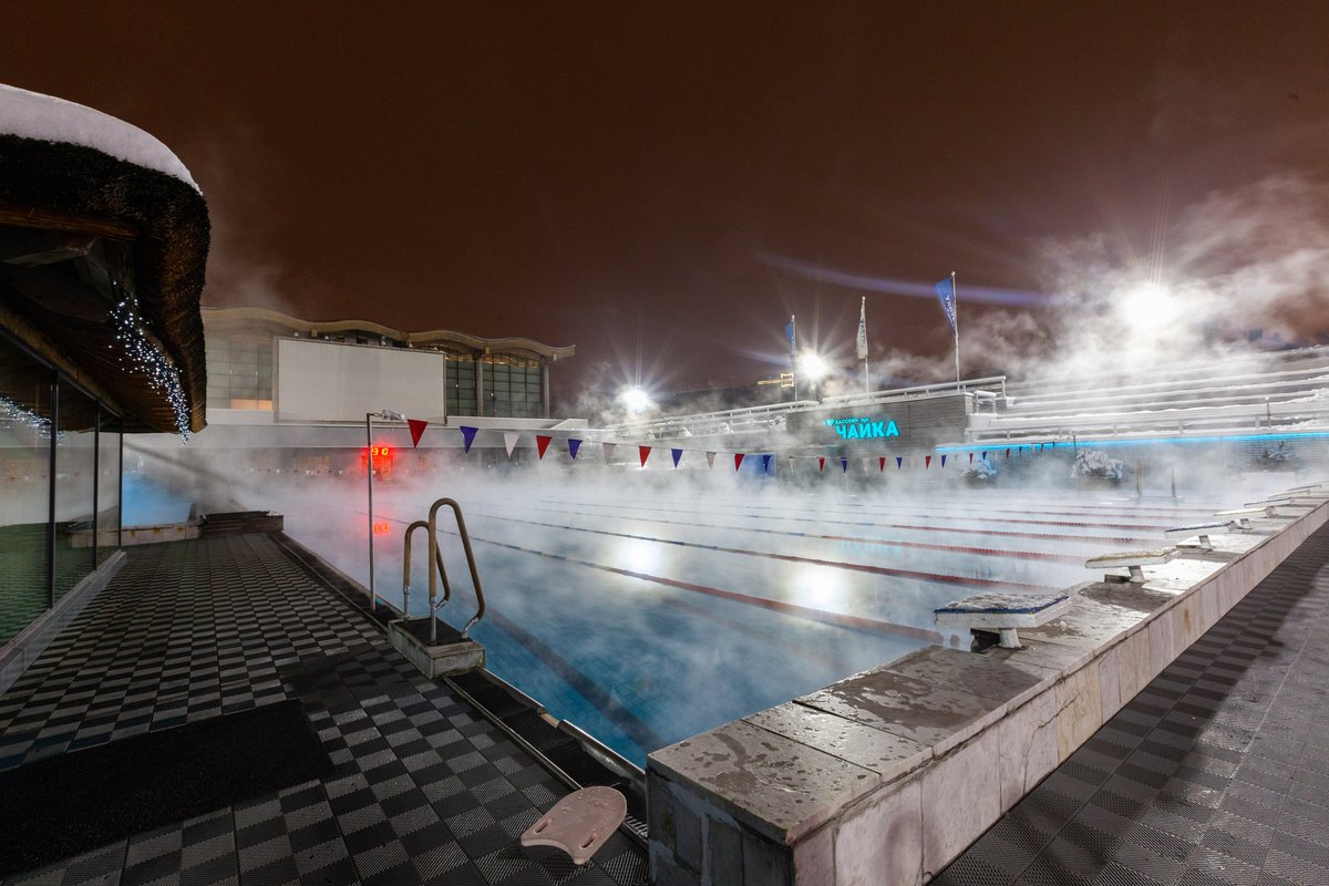 Из плюсов: очень приятно плавать под открытым небом в +2 в центре города. Или под снегом. Или под дождем
