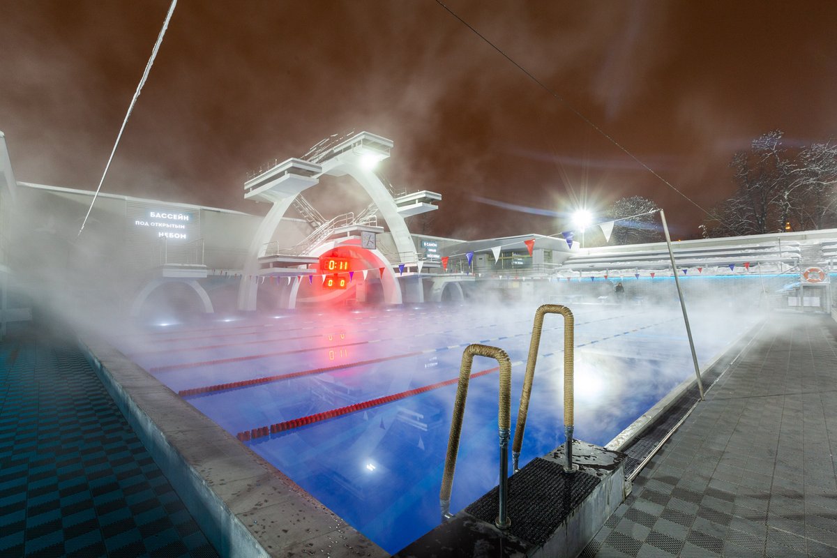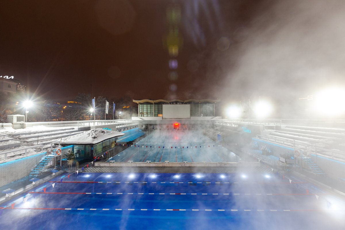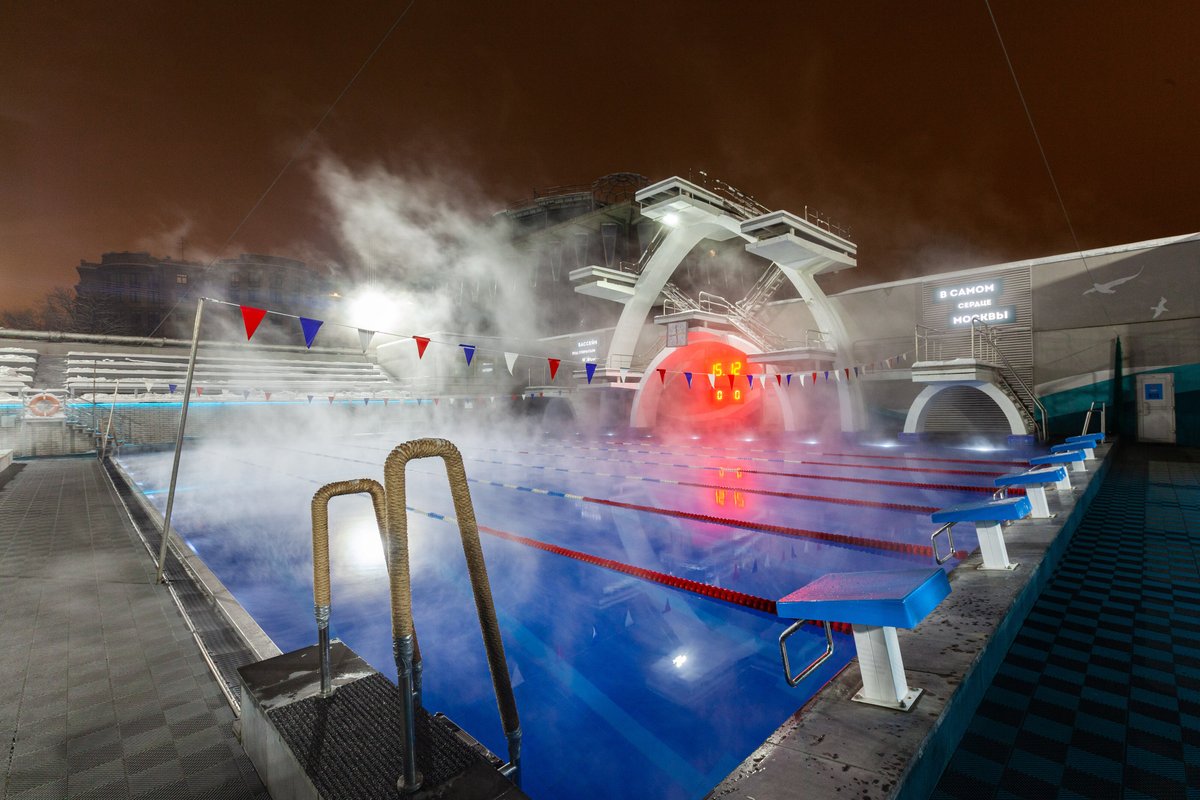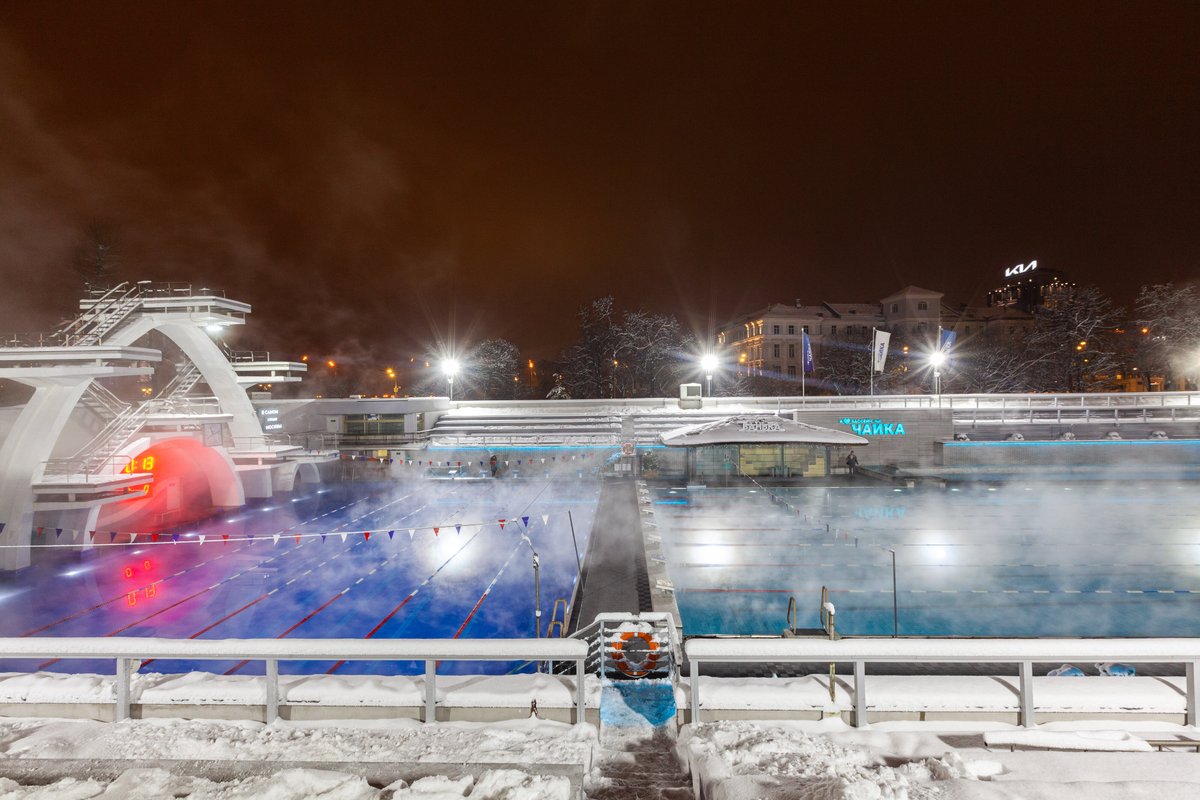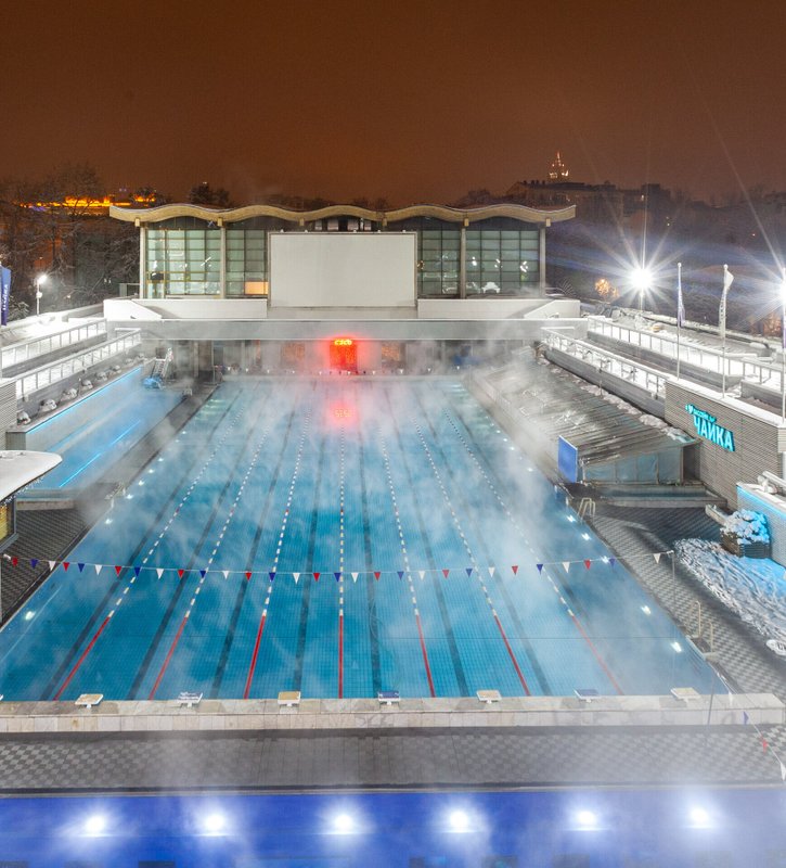 Из плюсов: очень приятно плавать под открытым небом в +2 в центре города. Или под снегом. Или под дождем