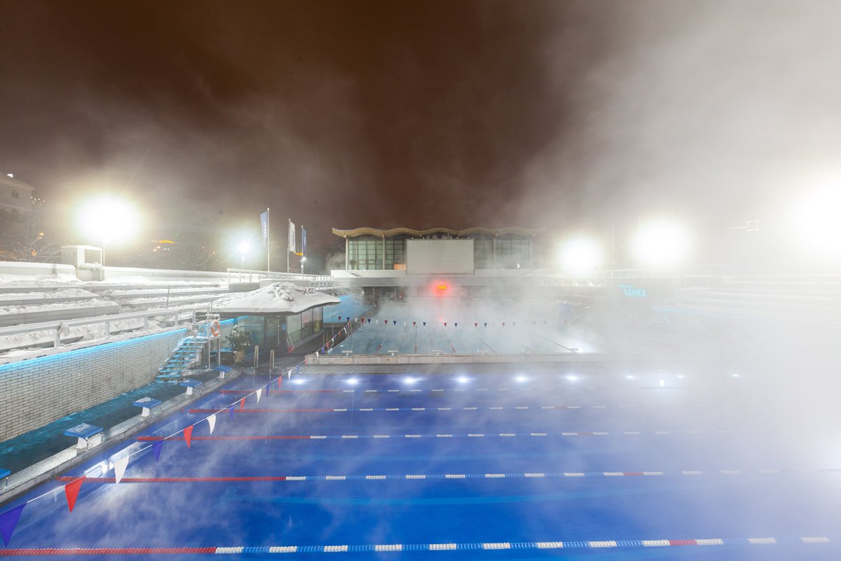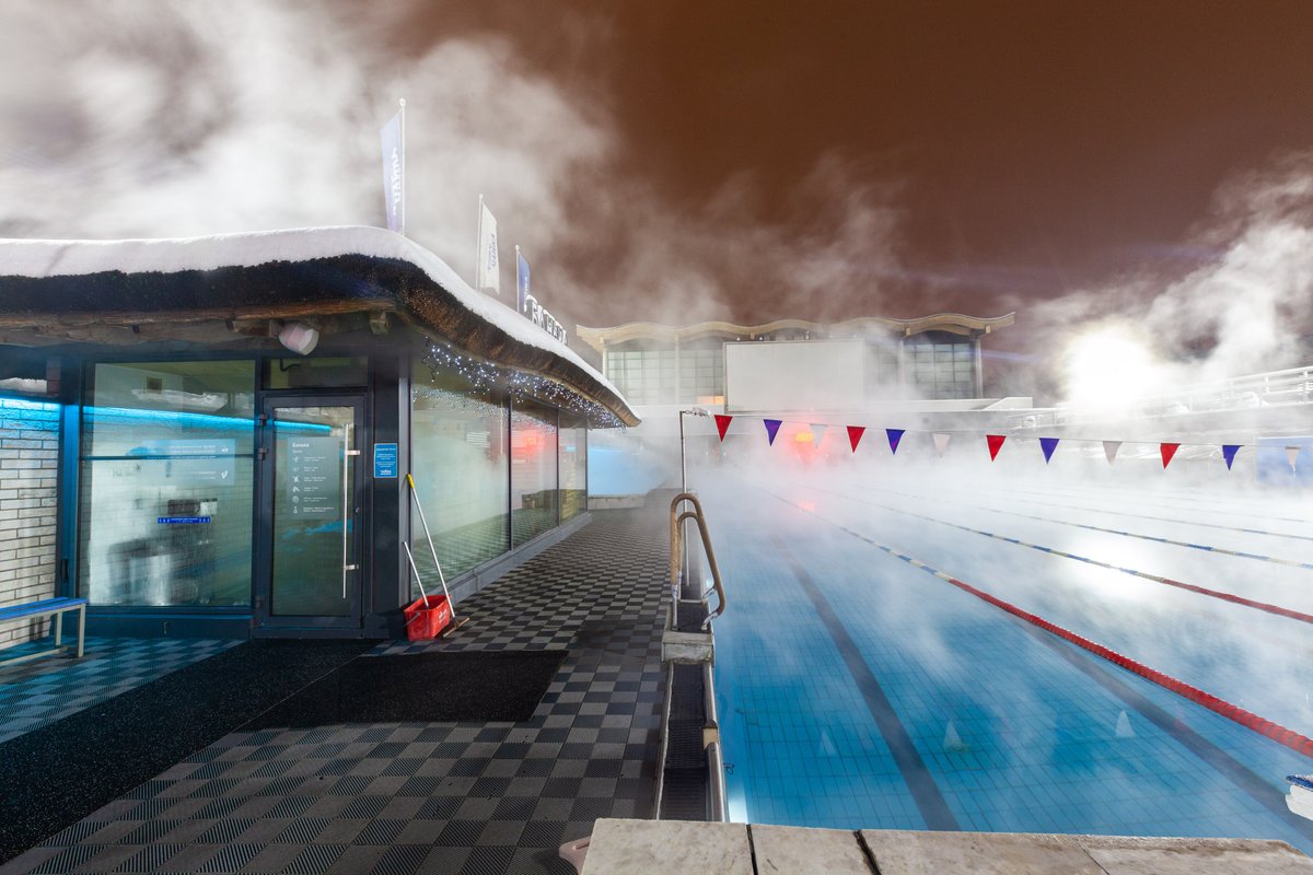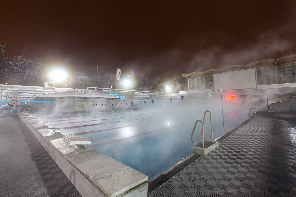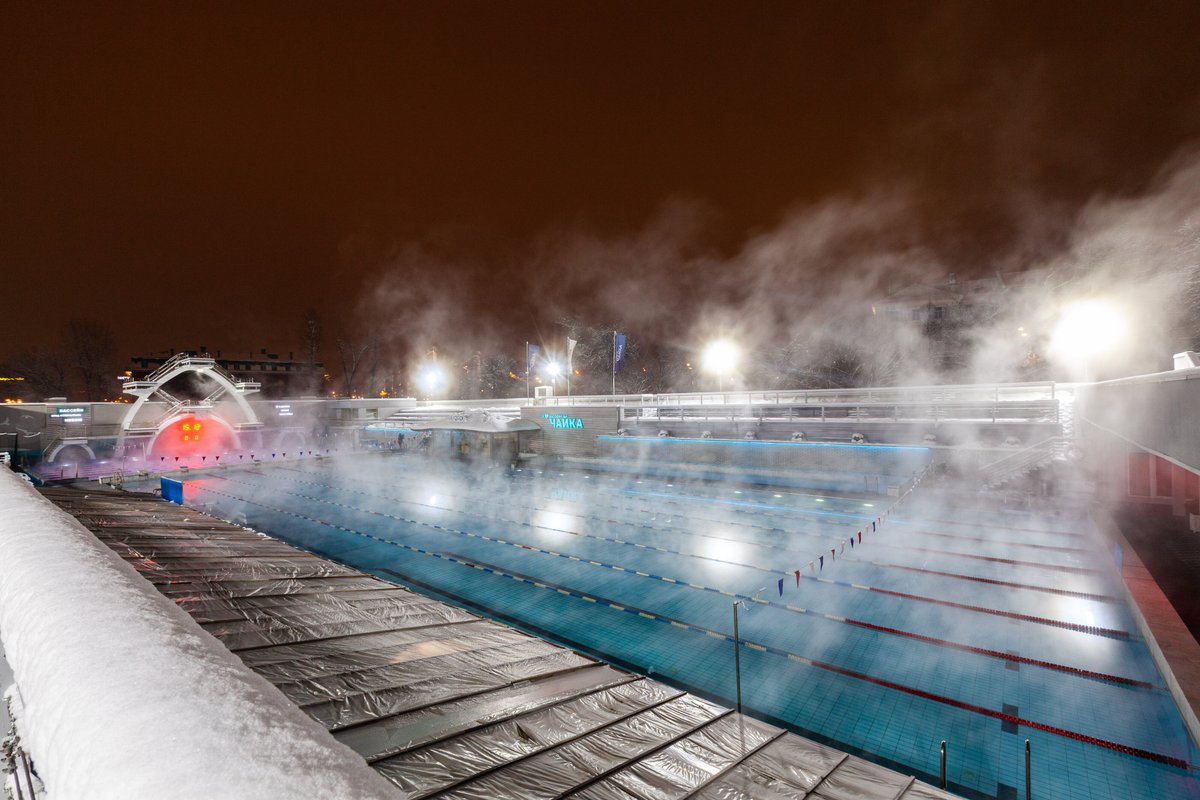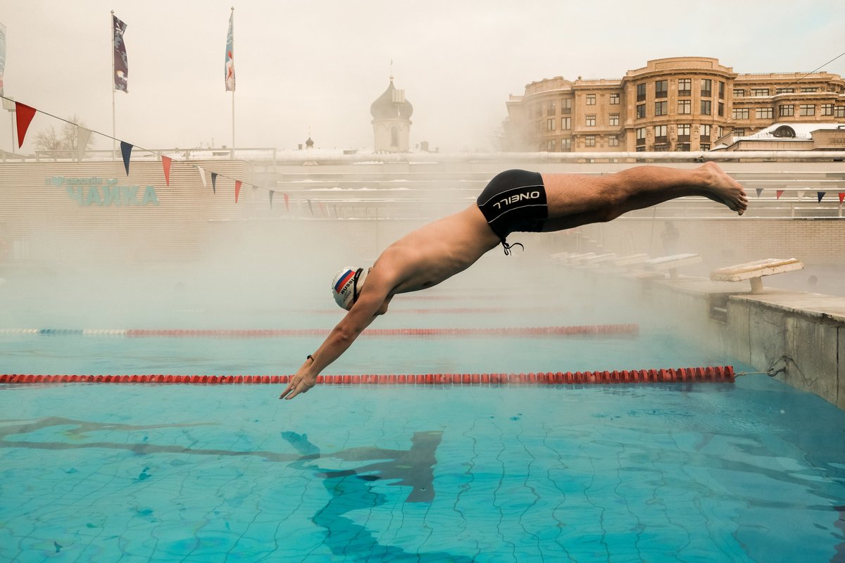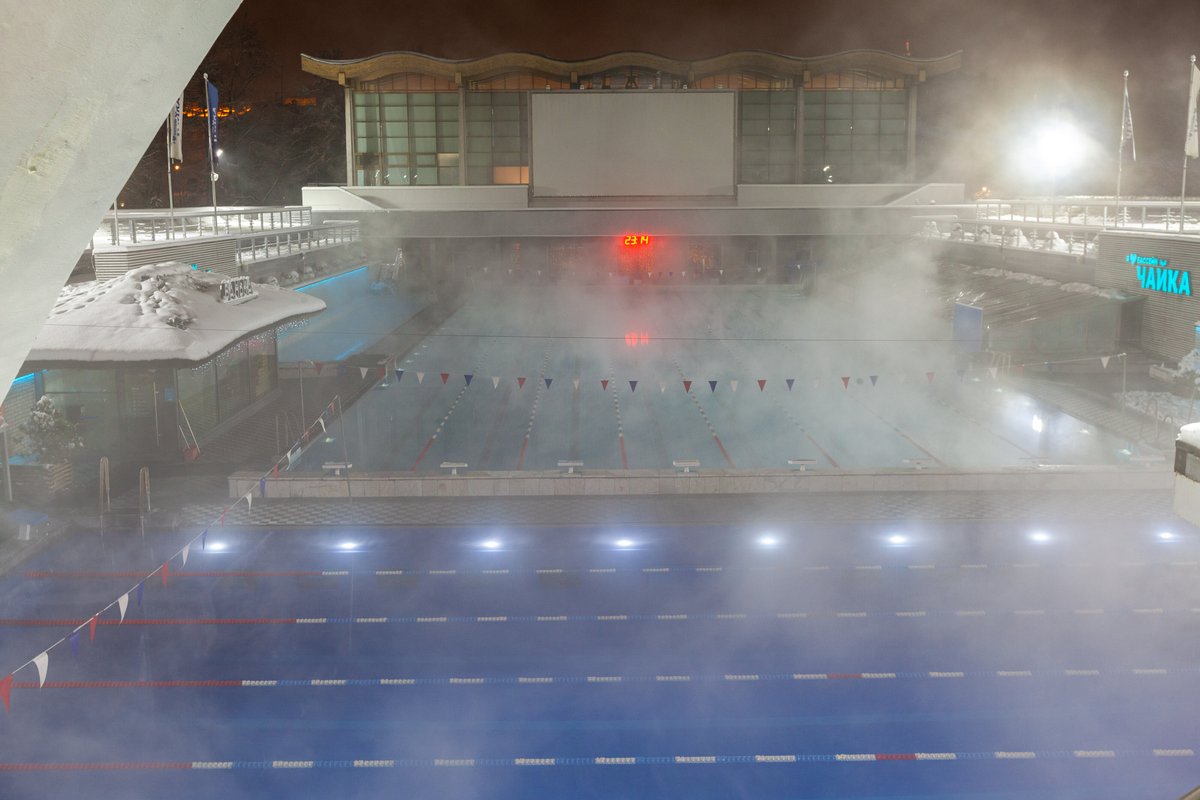Из плюсов: очень приятно плавать под открытым небом в +2 в центре города. Или под снегом. Или под дождем
